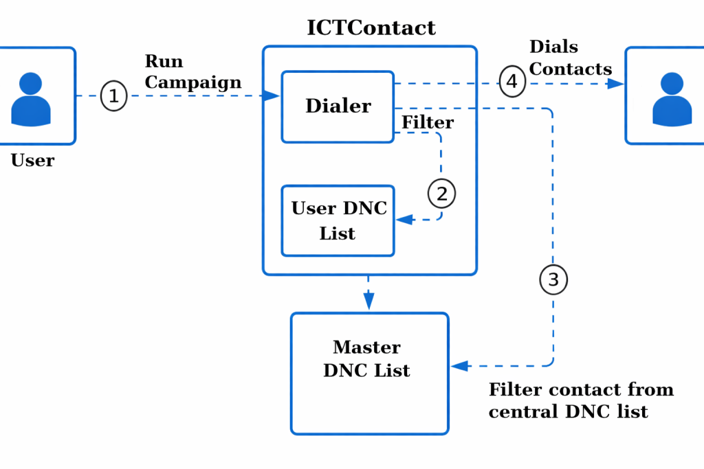 The User DNC list is maintained at the tenant or user level. It allows individual contact centers to manage their own opt-out records for voice campaigns. Numbers can be added manually or populated automatically when a call recipient chooses to opt out during an interaction. Once added, the system ensures that the contact is excluded from future calling attempts.