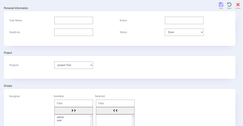 Admin can also create task under/for project and can assign it to other user. Admin can also set deadline for this task to complete in time. Admin can also update task status as done, in progress e.t.c.