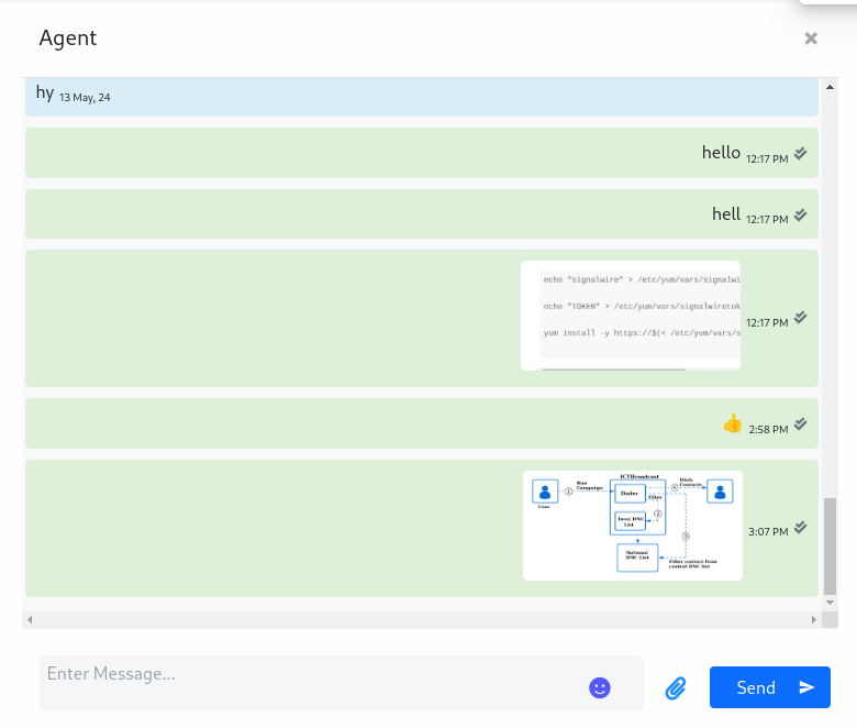 agent can seen message and reply it as text message, video, sticker, image and document file.