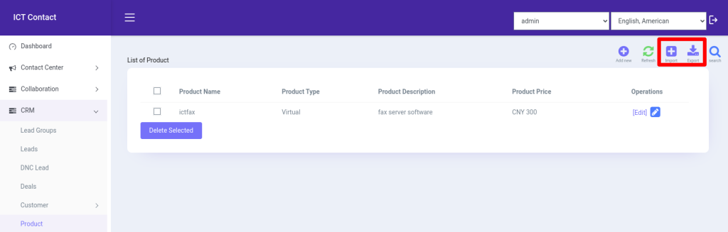 ICTContact also allows user to import their products via csv files.
