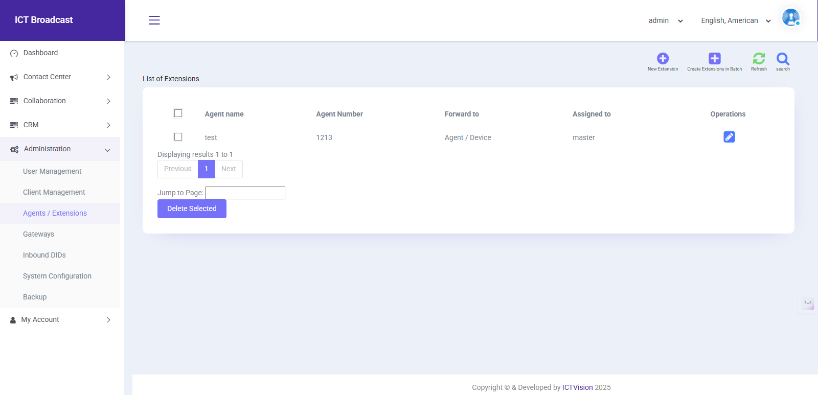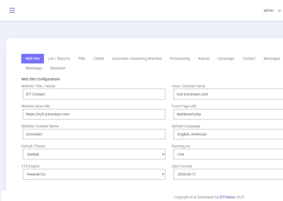 Screenshot Images and Screenshots of ICTContact AMD1 Backup System Configuration Gateways Agents Extensions Client Management User Management Invoices Quotes Product Contacts Contact Groups Company Overview Live Statistics login History Projects Tasks LeAd Groups Deals Payments Countries carrier Destinations Timeslots Routes Rate Plans Rates Regions Dialogues Scripta IVR SMS Fax Documents Campaign Management Dashbord