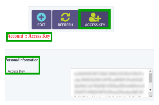 Click on Access Key button to get access key for account as shown below: