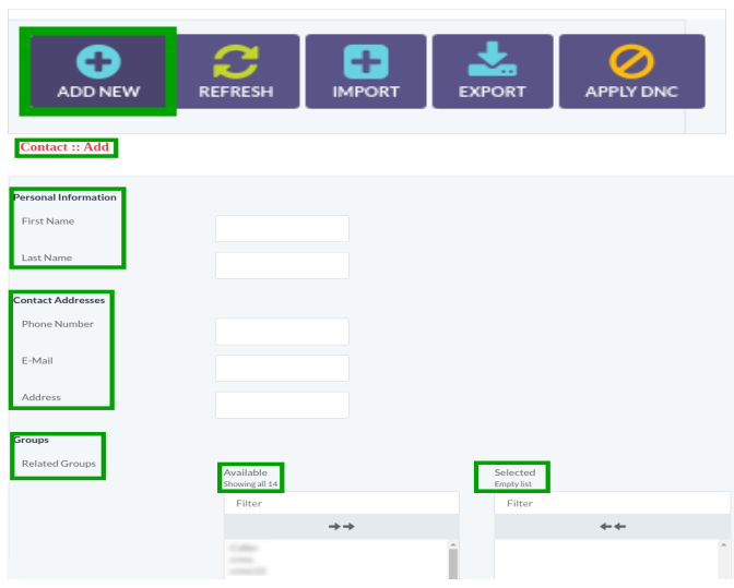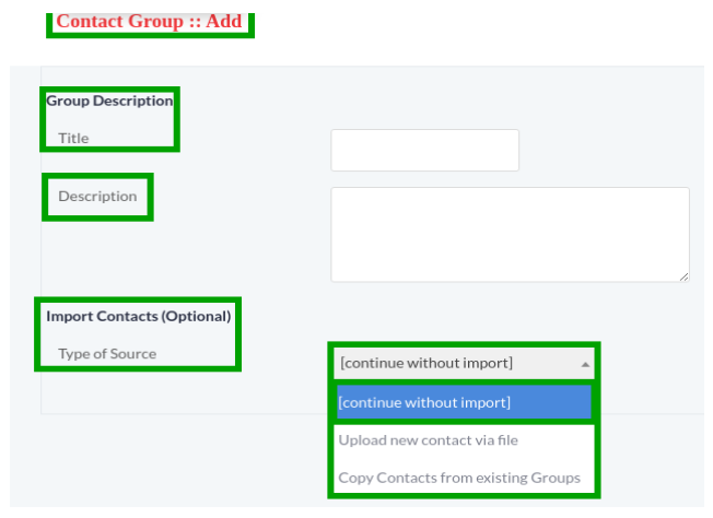 Click on Create Contact Group button, a window form will appear on screen that contains required fields to add new contact group such as: