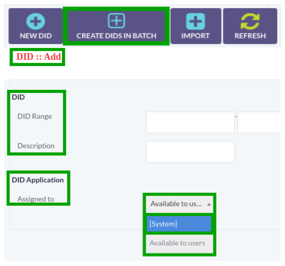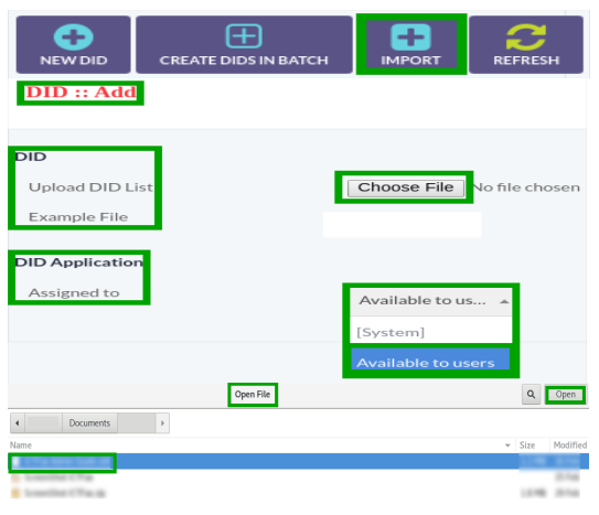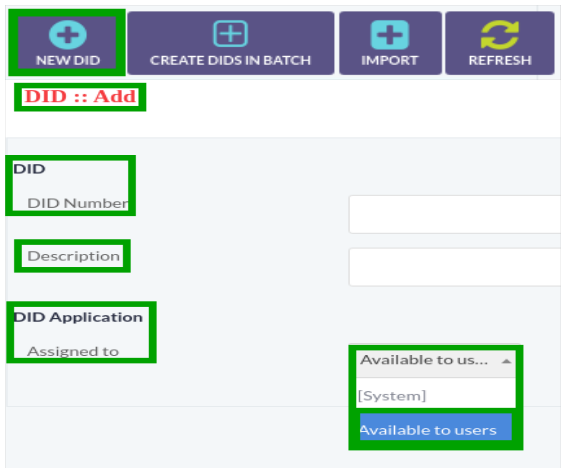 - Write DID number in the text box.