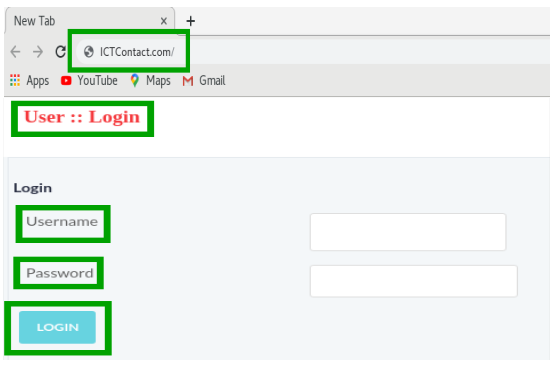 - Login page will appear on screen with required fields.