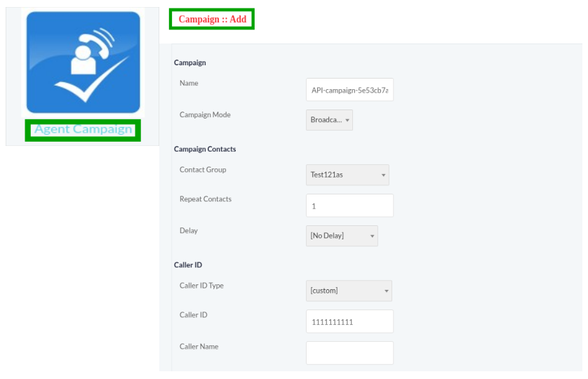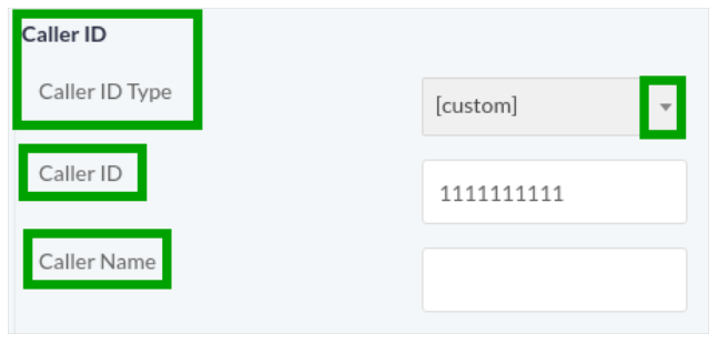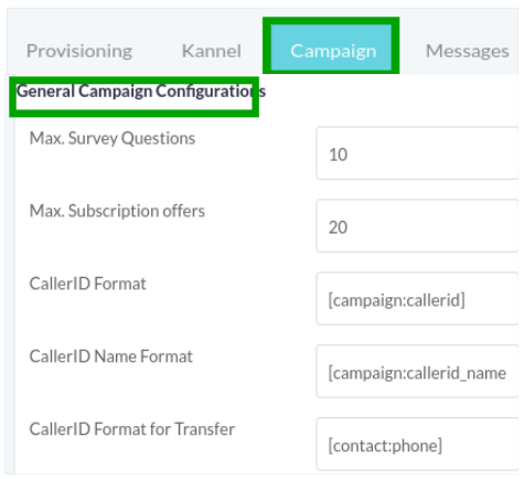 Sets default caller id for outbound campaigns. Admin can set any value here and it will be used as global caller id. Admin can also use tokens (variables) here such as [campaign:caller-id]. It tells system to use caller id set by individual campaign. - Caller ID Name Format: