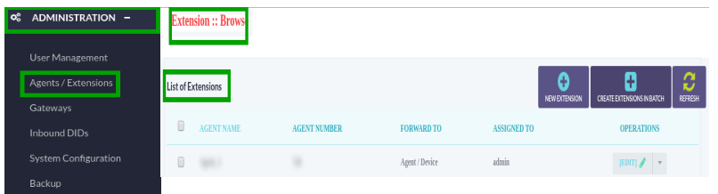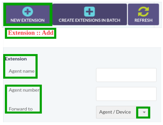 Agent/Extension: Click on Drop-Down button, select Agent/Extension from drop-down list.