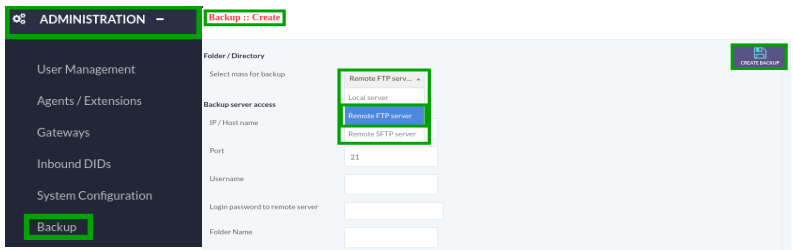 Click on Backup menu button from menu, a window form will appear that contain required fields to create backup.