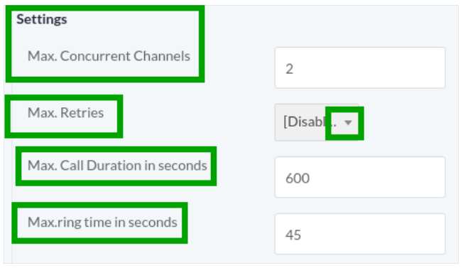 Maximum number of channels for each campaign. - Max Allowed Call Retries: