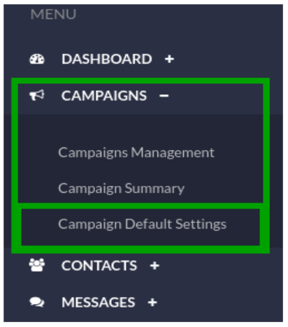 - Campaign Default Settings