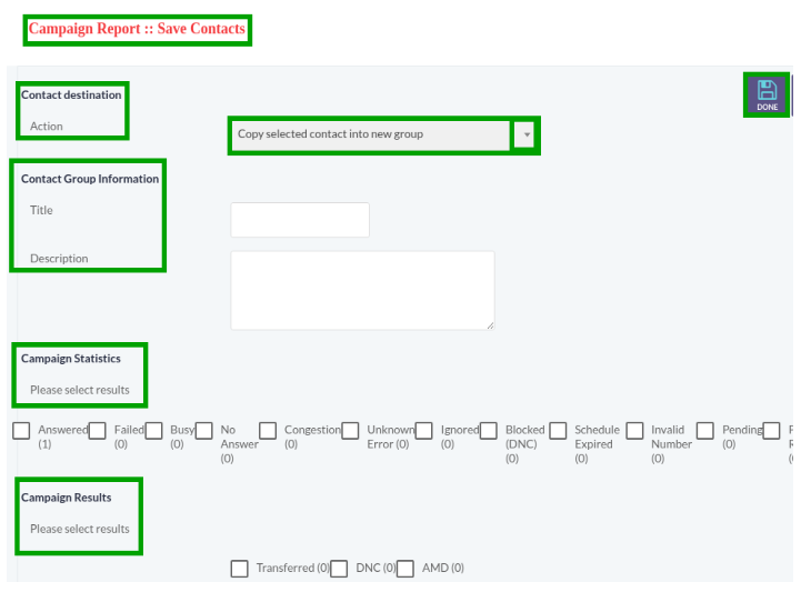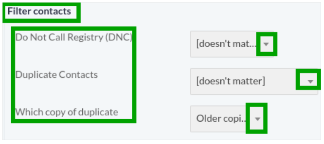 Set maximum number of call retries option. If set to disabled, then Max Retries option will not be displayed on campaign form. - Repeat Contacts: