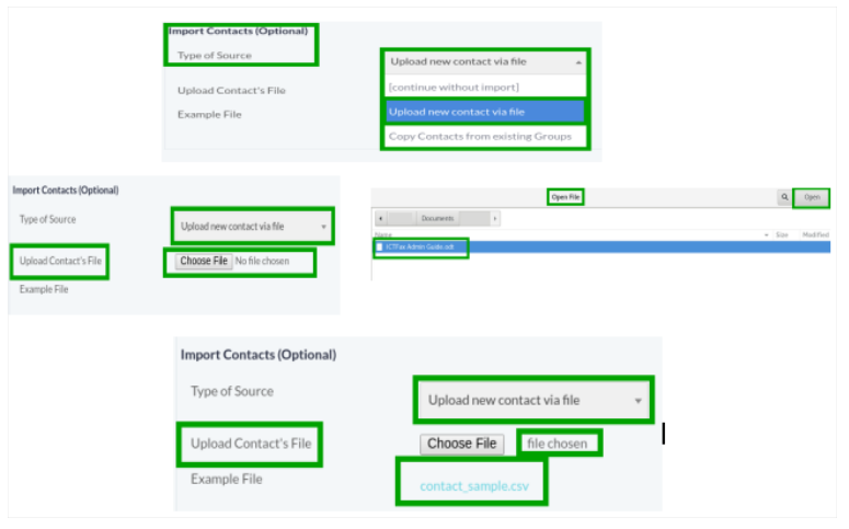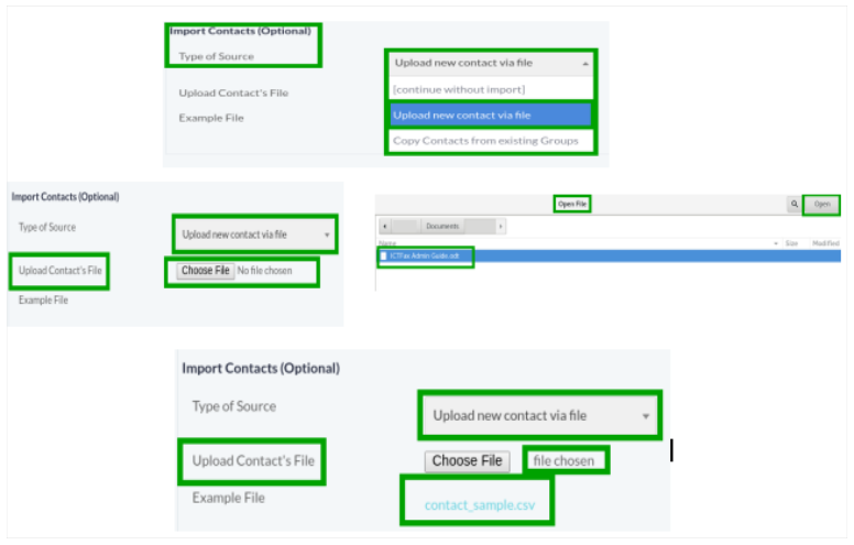 Select Contact Group File from the system that need to upload as shown: