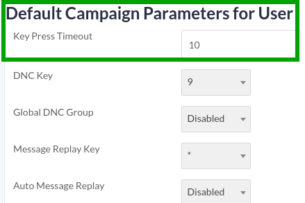 Max time to wait for user to allow him to press his desired key. - DNC Key: