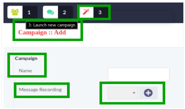 Click on Plus icon to record your message as shown: