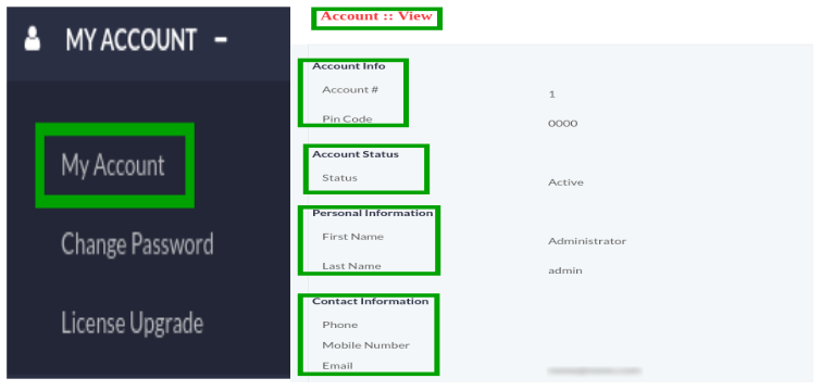 Click on My Account menu button from menu, a window will displayed on screen that contain account information as shown below:
