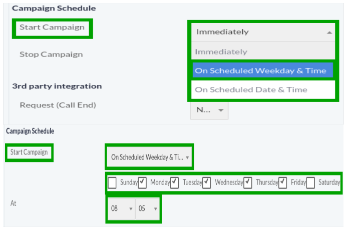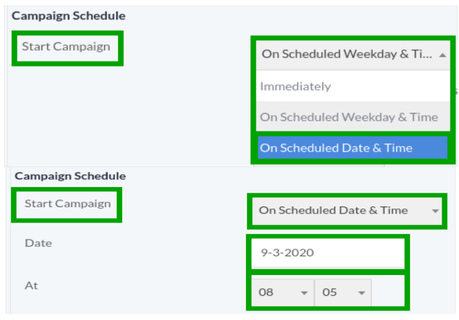 Click on Check Boxes to specify the day and time to start campaign