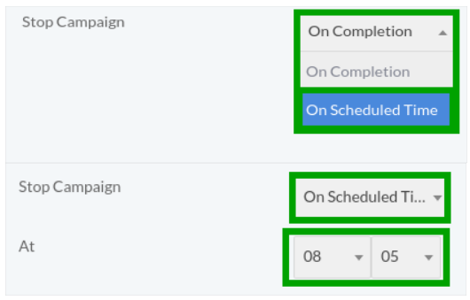 Click on Drop-Down button to select option from list when to stop campaign as shown: