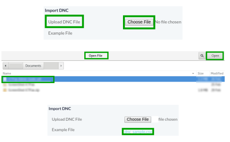 Select Upload New Contact File from list, upload contact file option will appear.